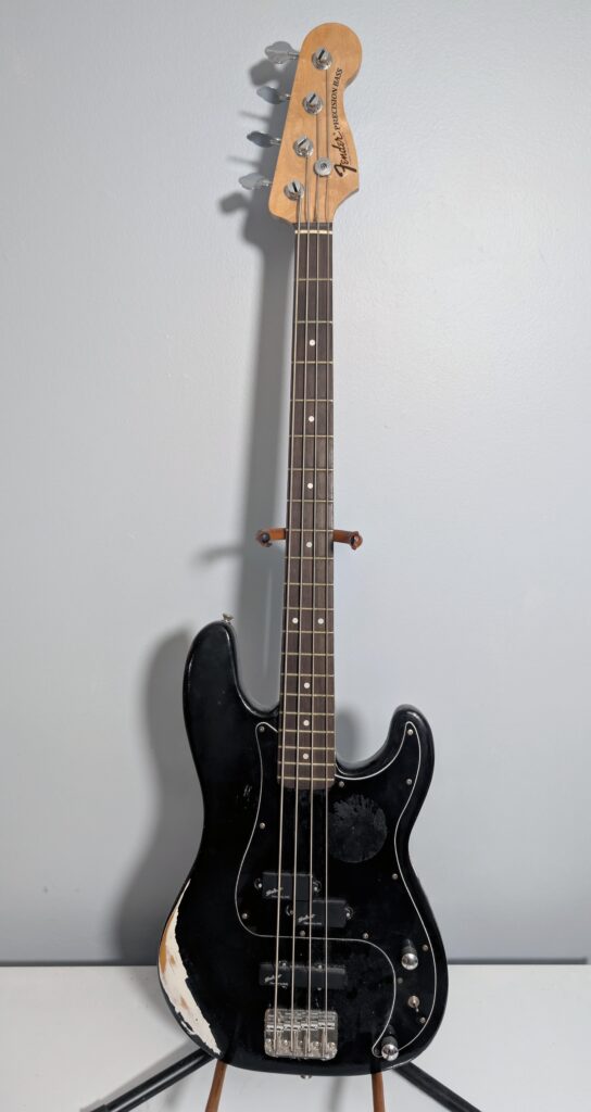 I technically didn't buy this bass, I built it. I bought the PJ body from a friend, the neck and a few other components from Guitar Fetish. Put it together, painted it poorly a few times, and boom. Even put a Fender logo on there for good measure. This actually plays well, and one of these days I will go through and fix the electronics. It actually sounds pretty awesome when it wants to.