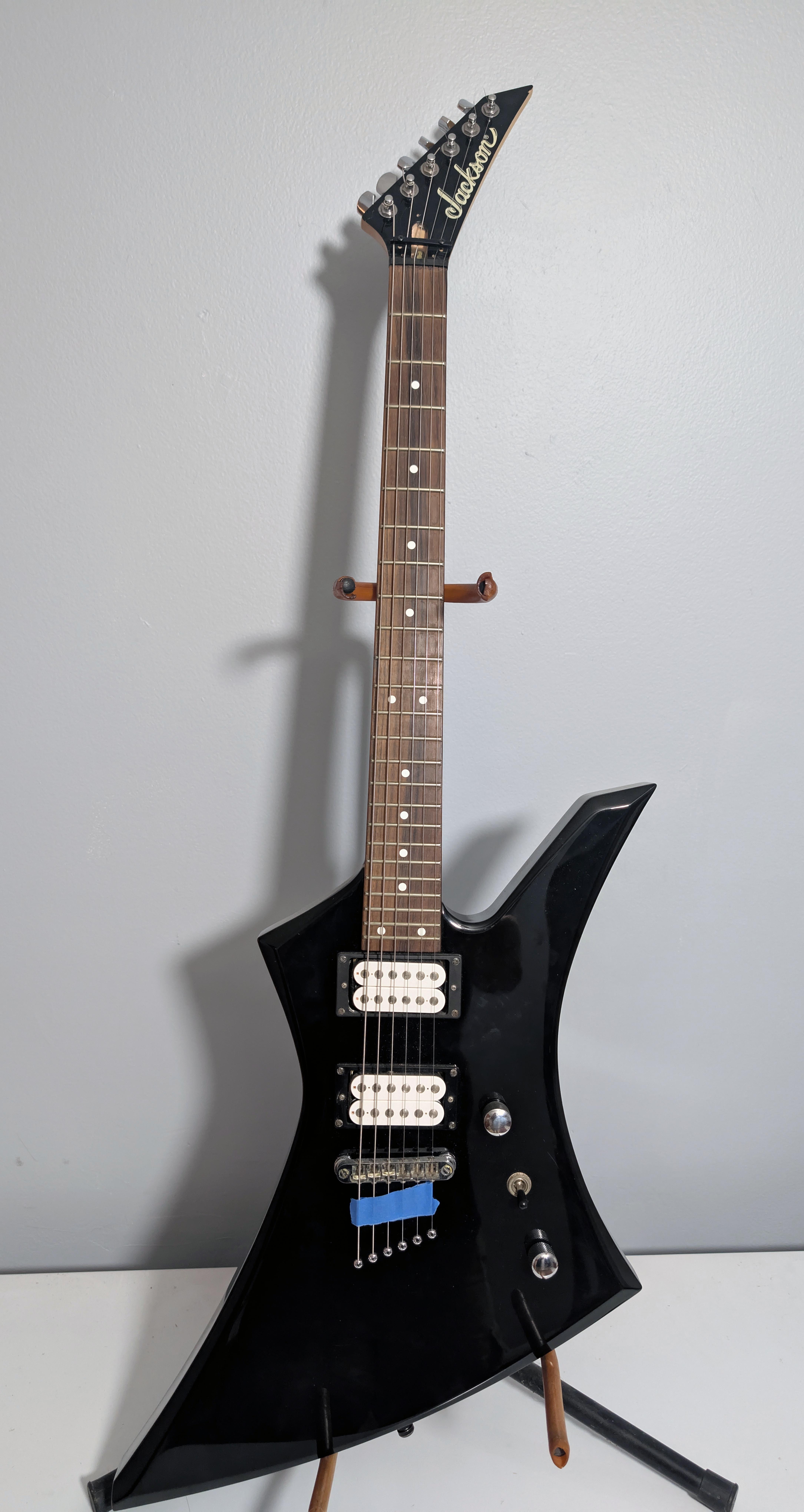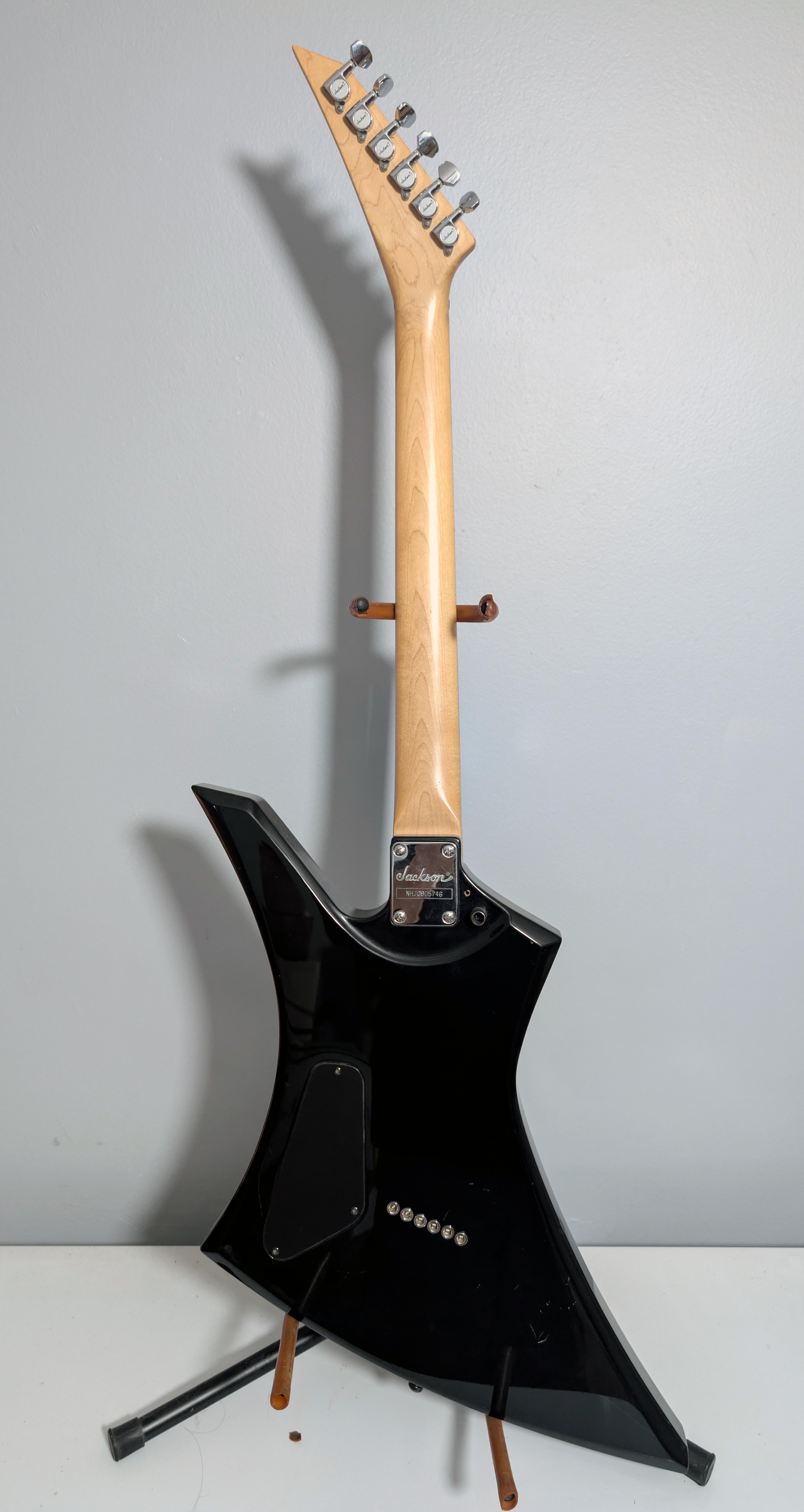 This was my second purchase ever of a guitar. I was barely 15 years old, but I found it in a pawn shop who was giving it away for $50. Someone had dropped it and took out a giant chip from the guitars lower horn, but a little sandpaper and spray paint later, and it has been good as new. I never really played it much, as I have never been one for those pointy explorer type shapes. It actually was sold to a friend for a while before it returned to me some 10 years later. All and all, its a good playing guitar. It currently has some random GFS overwound pickups in it now, and they sound decent.